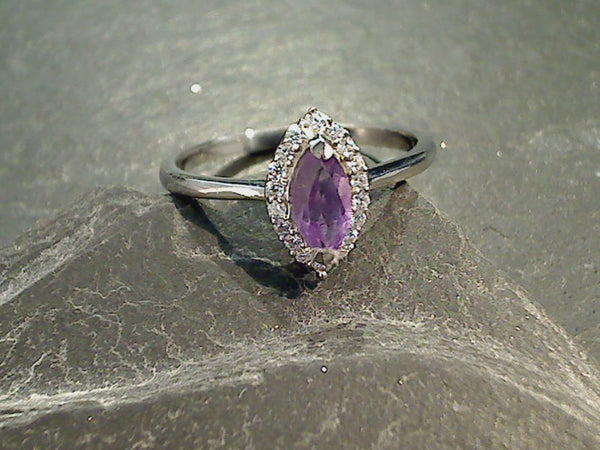 Size 7 Amethyst, CZ, Sterling Silver Ring