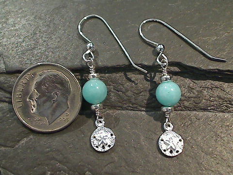 Amazonite, Sterling Silver Sand Dollar Earrings