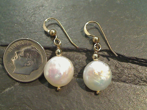Coin Pearl, Gold Filled Earrings