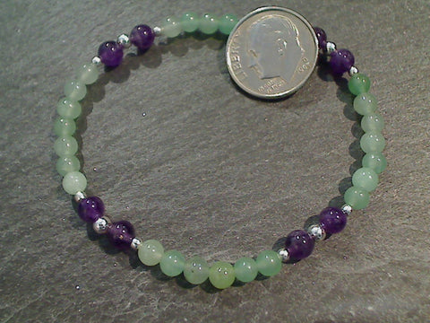 Amethyst, Aventurine, Sterling Silver Stretch Bracelet - Small