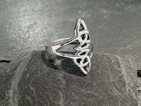 Size 6.75 sterling silver Celtic knot ring. The band measures around 2mm at the back and the ring is around 7/8" long at the front. Each ring comes packaged in a jewelry box.