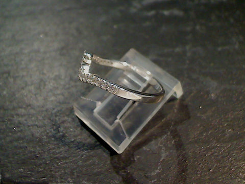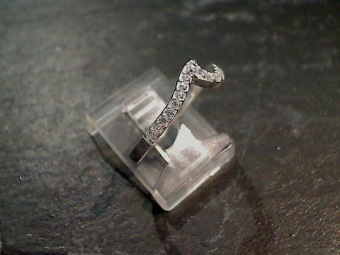 Size 6 Cubic Zirconia and sterling silver wave ring. The band measures 2mm wide and the single row of Cubic Zirconia cover the front half of the ring. Each ring comes packaged in a jewelry box.