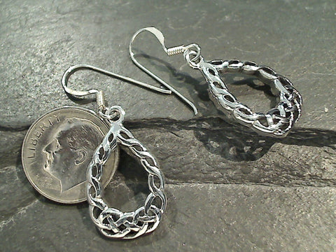 Sterling silver Celtic tear drop earrings measure just over 1-3/8" tall with the hooks by just over 1/2" wide at the max points and are light weight. Each pair comes packaged in a jewelry box.