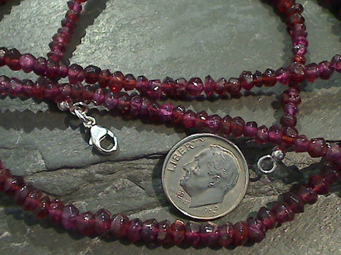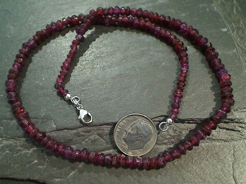 16" Garnet, Sterling Silver 4mm to 5mm Necklace