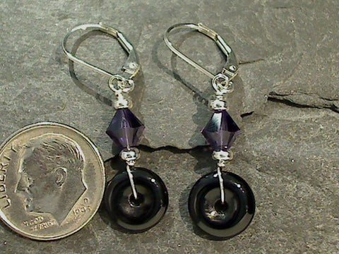 Onyx, Purple Crystal, Sterling Silver Earrings