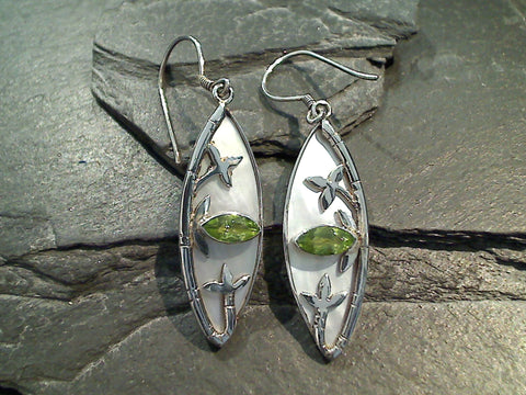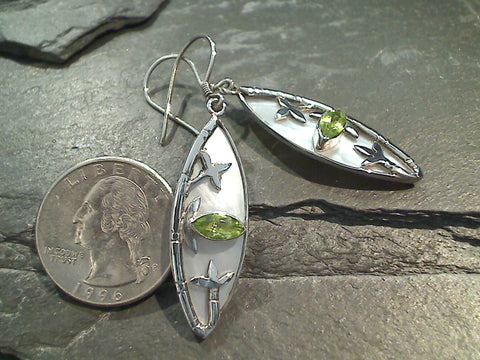 Mother of Pearl, Peridot, Sterling Silver Earrings