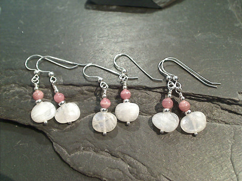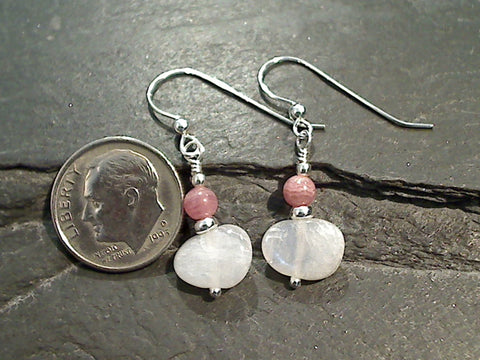 Moonstone, Rhodochrosite, Sterling Silver Earrings
