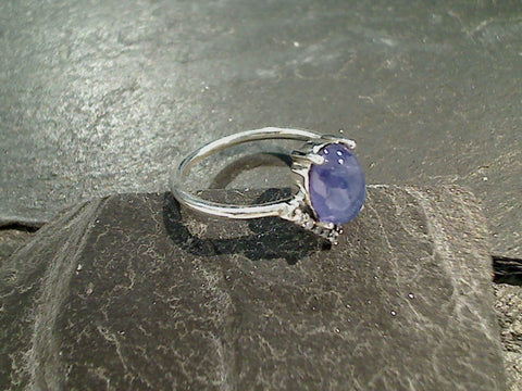 Size 6 Tanzanite, CZ, Sterling Silver Ring