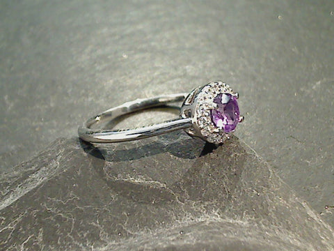 Size 9 Amethyst, CZ, Sterling Silver Ring